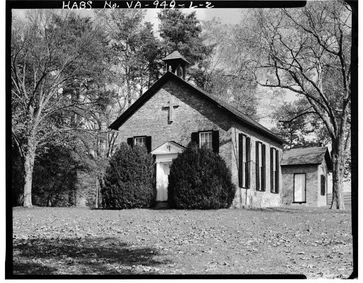 A small abandoned Church at 39924 Oatland Mills Road just off SR 615 with Cemetery. This brick Anglican church was erected in 1878, with a later frame parish hall adjacent.