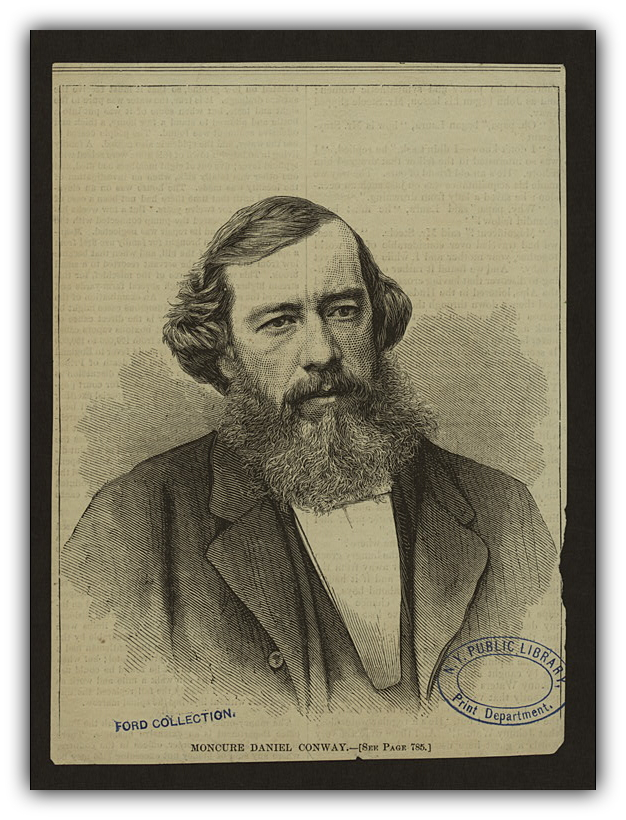 Moncure Conway emerged as a rare abolitionist from the South. In Professor John d’Entrement’s biography of Conway, “There always had been a tension in Conway between his drive for independence and his need for interdependence, a compulsion to confront and a craving to reconcile, an impulse toward conflict and a longing for peace. For much of his life he had kept these competing needs balanced, though uneasily. The Civil War had disrupted the balance and forced him to take sides actively in the bloodiest conflict in American history. It had burdened him with the most macabre of ironies, compelling him to fight the violent subjugation of one people by violently subjugating another -his own people.”18