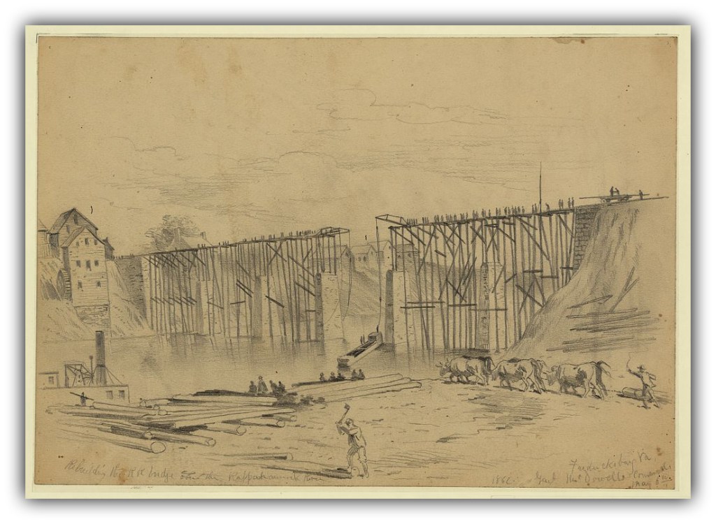 The railroad bridge over the Rappahannock will require a considerable length of time to be repaired, as the piers are very high and wide apart.