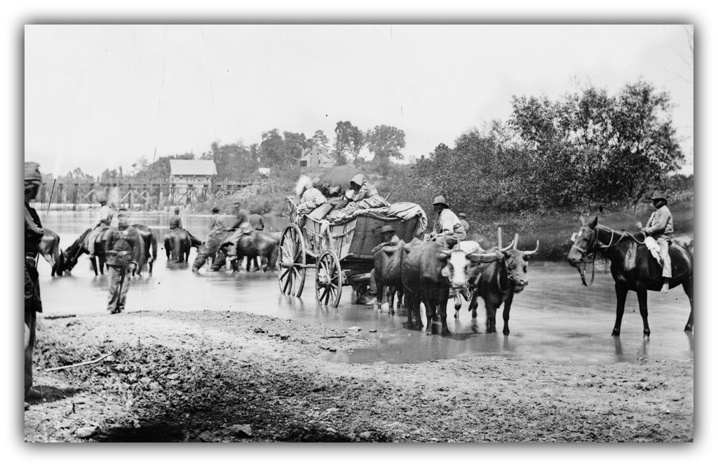 Word spread throughout the slave population in central Virginia that deliverance lay across the river. Thousands made their way across by foot, by cart, by skiff, or boat. Once on the other side they often found sustenance serving with the Union army.